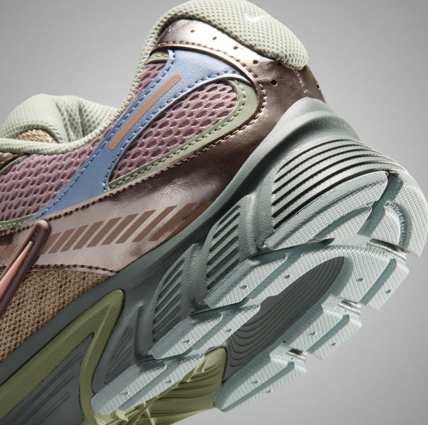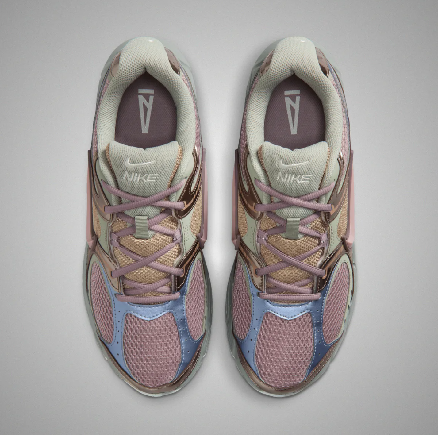 That makes this upcoming project from AMM and Nike all the more interesting. Shared by “the sneaker information guy” @brandon1an, Maniére and Nike are cooking up a new series of releases featuring the V5 RNR. The silhouette was first introduced early in 2025, and has bene quietly filling out Nike’s offerings for the last year. The shoe’s shape and design is somewhat akin to the Vomero 5, but with a significantly cheaper price point, below $100. According to Brandon, AMM has a series of seven colorways for the model coming throughout 2026, starting with this “Light Carbon” edition soon. The look is notably more colorful than their usual tonal, neutral Jordan releases, and combines shades of Fig purple, tan, maroon, khaki, and olive green for an eccentric palette.