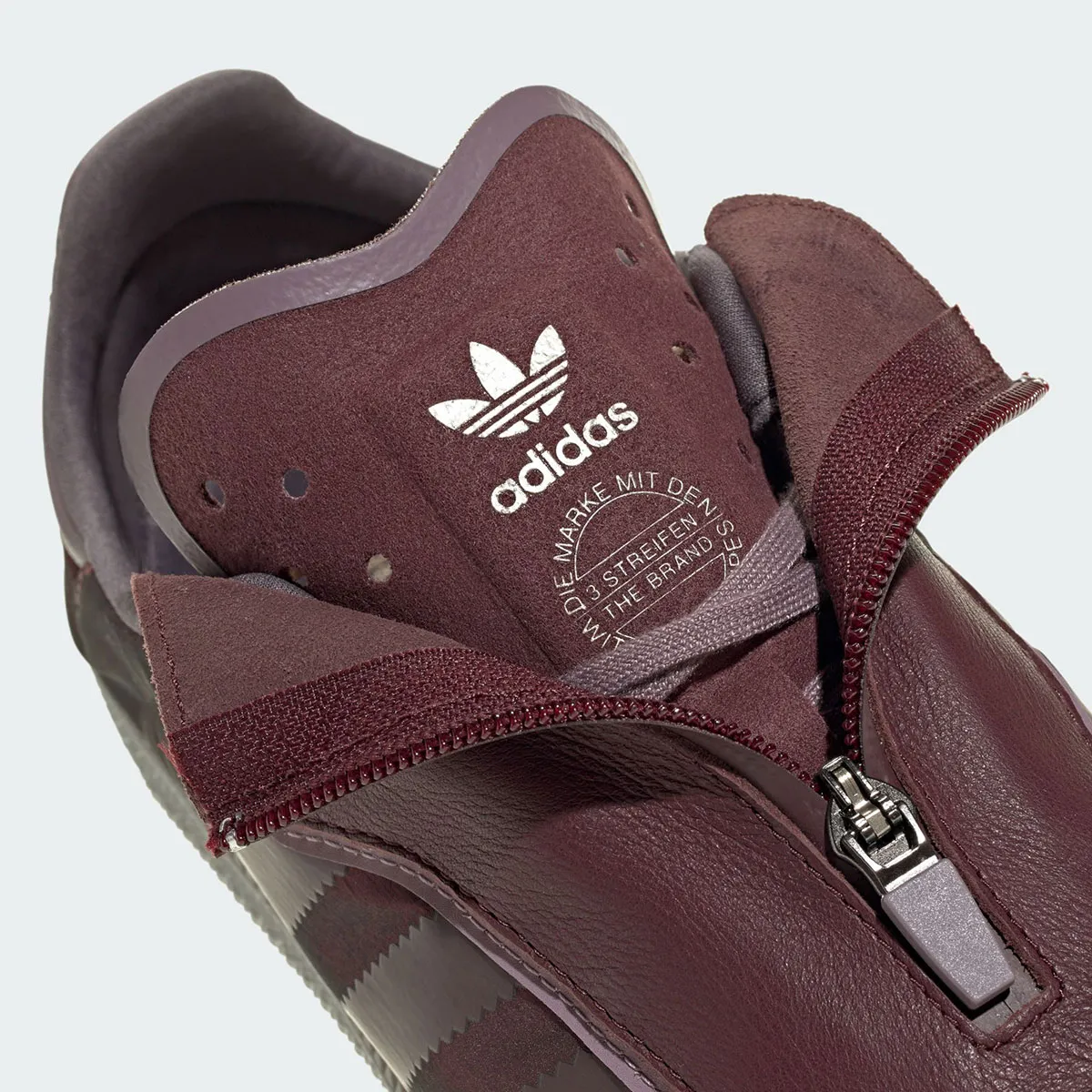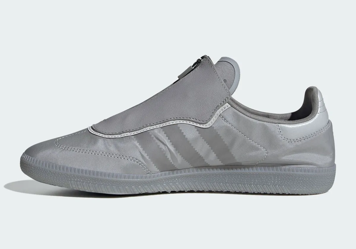The new iteration of the iconic Samba from adidas has not been officially announced for release yet, but is likely on the way for a Fall 2025 drop. Giving the shoe a new simplified construction and a leather zipper shroud over the lacing system, the new model will arrive initially in tonal grey & burgundy red color schemes. Pairs will be priced at $120.