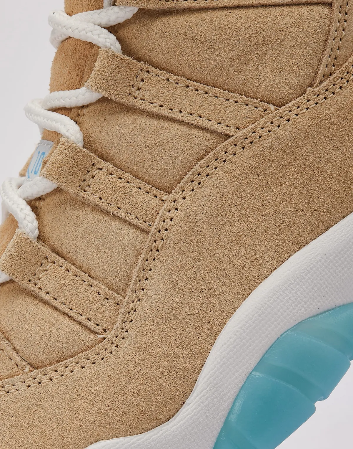 Jordan Brand’s US-exclusive releases come in a pack of three styles. The “Mojave” purple look seems to be a west coast exclusive, while the “285” celebrating Atlanta is likely an east coast drop. In the middle, they have this “H-Town” pair, which celebrates car culture in Houston, Texas. The look sports a super soft silk suede upper, dyed in a light Canvas tan shade. This is paired with white accents for the midsole and heel tabs, while an electric shade of blue appears on the outsoles and tongues. Chrome Jumpman branding completes the look.