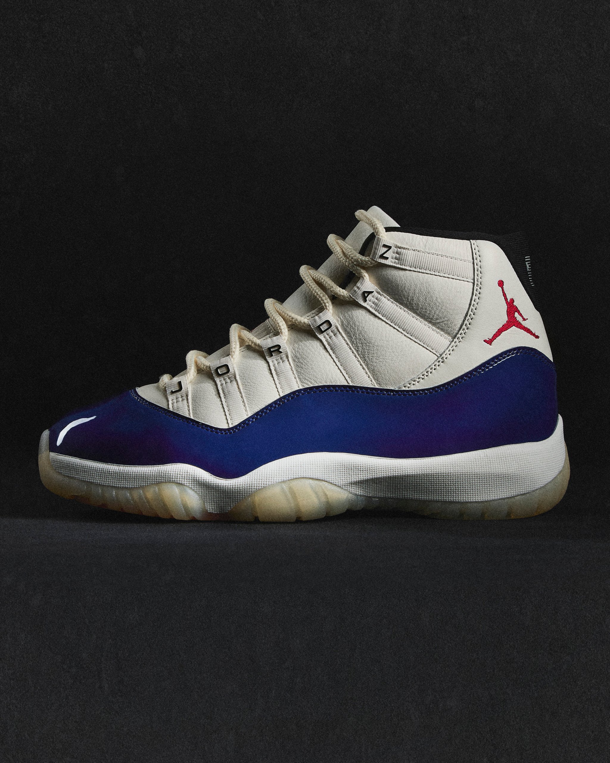 Next year’s revival of the Rare Air series will feature a number of iconic JB silhouettes. The AJ1, AJ3, and AJ4 will all be included, and joined by a shared color scheme in red, white, blue, and black. This week, the Air Jordan 11 has surfaced as a part of the collection, though no sample images have appeared yet. The shoe is expected to come in a mostly navy blue upper, with red accents and a sail/muslin sole combination underneath.