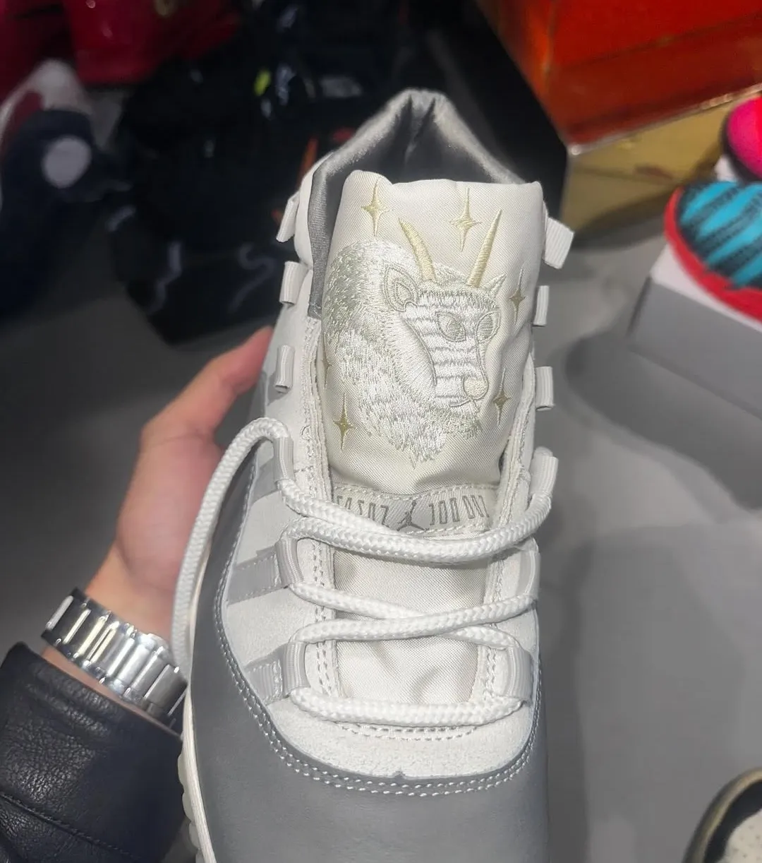 UPDATE 11/19/25: New in-hand photos of the “Tokyo” AJ11 are here, showing off the tongue’s special goat embroidery.