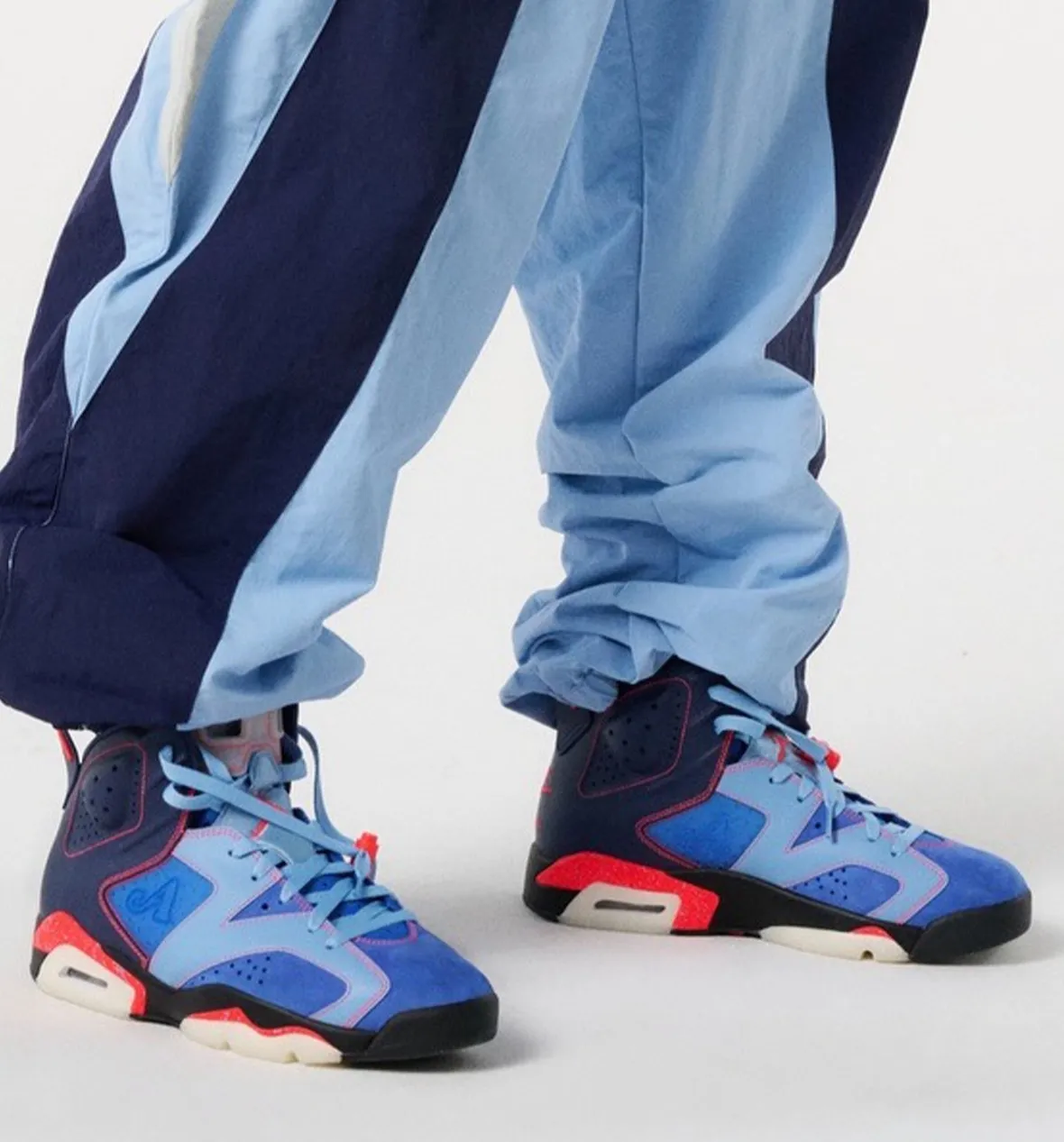 UPDATE 2/23/26: Our first look at the Awake NY x Air Jordan 6 is here, showing off the shoe’s “Midnight Navy” color scheme, an eclectic look that mixed three shades of blue with red contrast stitching. This first appearance likely means a release sometime in Spring or Summer 2026.