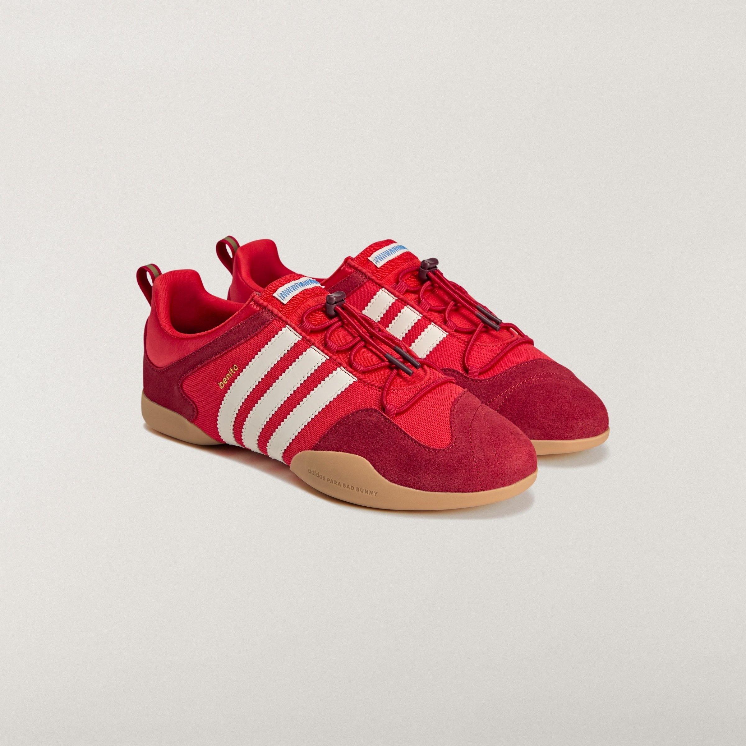 Releases from adidas and Bad Bunny for next year continue to lineup. During their The Archive event in PR last month, the two showcased some upcoming projects, including a GT Racer release in collaboration with Mercedes, and a tease of his first signature model, the BadBo 1. This week, Benito hit the stage in a fresh pair of his Ballerina model, in a new colorway inspired by the Flamboyan tree. Native to Puerto Rico, the tree sprouts striking red leaves throughout its bloom. The shoe mimics this through a Vivid Red upper, adding white stripes and a gum sole to complete the look.