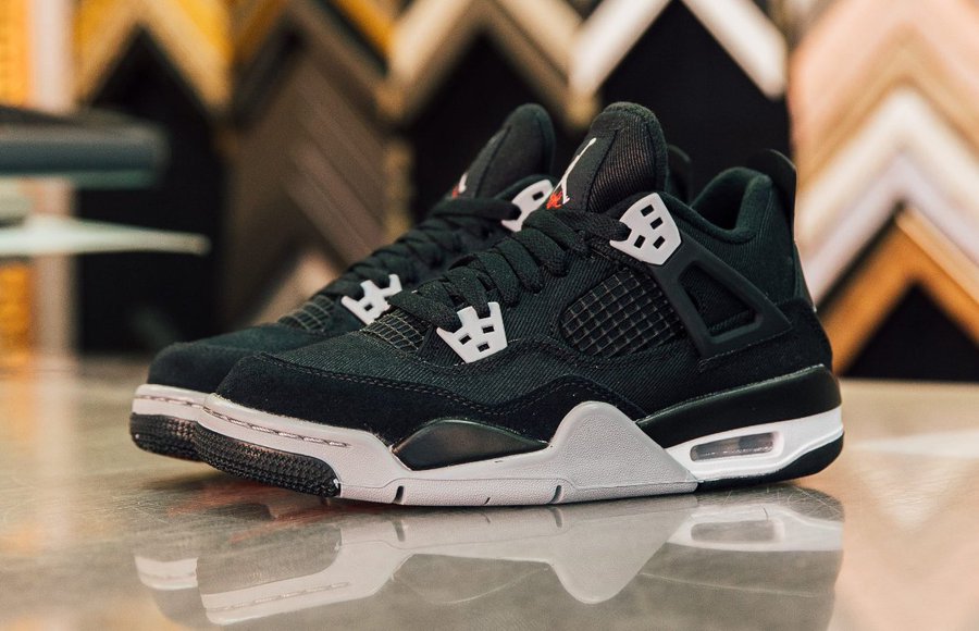 Set to drop in Black, Light Steel Grey, White, and Fire Red, the Air Jordan 4 opts for a design that may look familiar to you; that’s because it boasts a striking resemblance to Eminem’s Carhartt 4’s. The black canvas is seen across the design with black suede and plastic overlays which also share time with grey. More grey detailing is added to the tongue labels and the Jumpman logos on the heels as a black, grey, and white midsole, and black outsoles are added underneath.