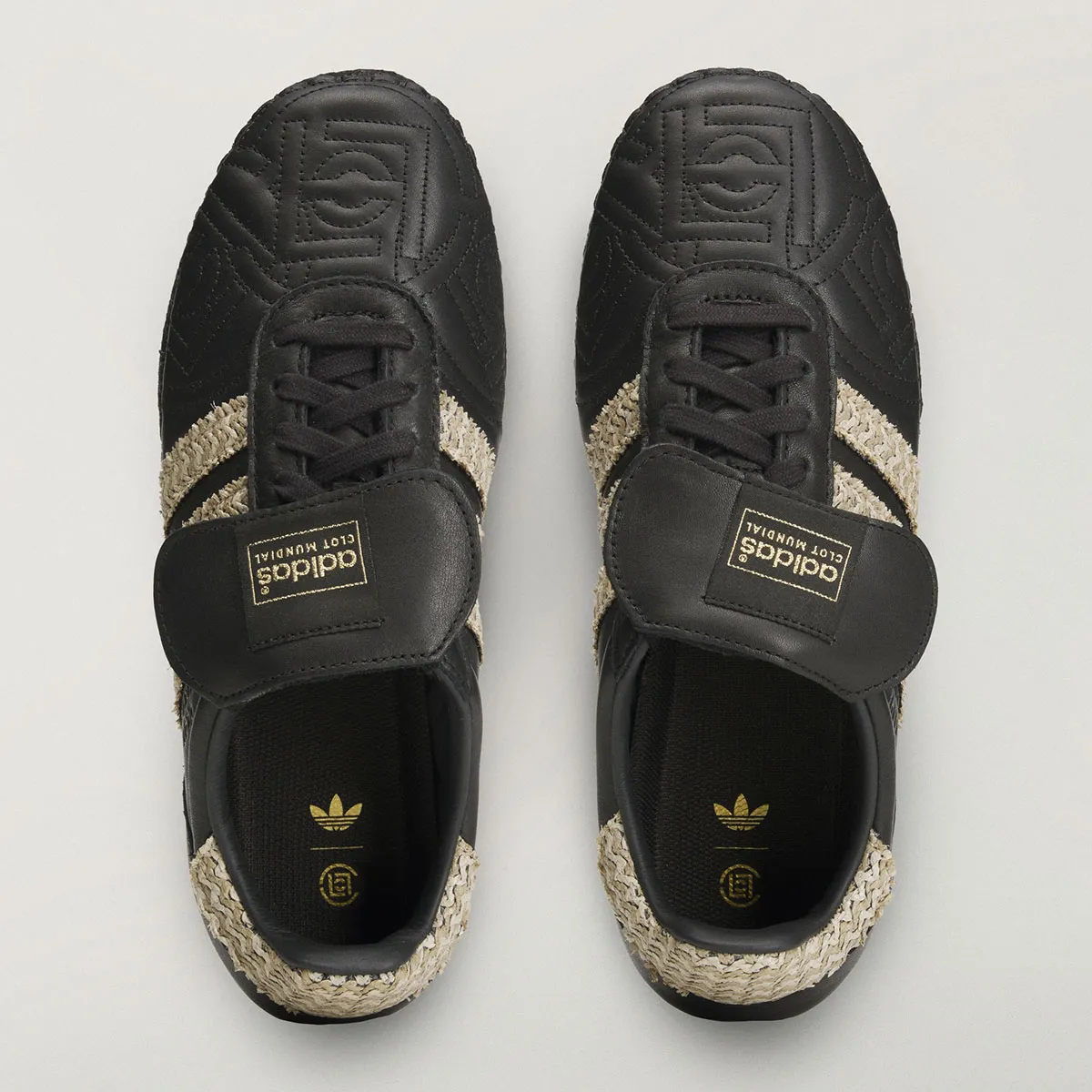 Soccer (or football) is a huge part of the sneaker world, particularly in the last few years as slim, retro trainers have come back into fashion. adidas and Nike have both leaned into this, bringing back some of their iconic field-ready boots in lifestyle forms for Summer seasonal collections. With the World Cup happening this year, football-themed releases have hit a fever pitch, with both brands tapping their large stables of collaborators to bring something new and exciting to the table. This week, we have an early look at CLOT’s contribution to the World Cup craze with adidas, taking on the iconic Mundial boot and giving it their own unique spin. The CLOT version replaces the standard rubber midsole with a woven espadrille sole from some of their past releases, adding more woven elements for the Three Stripes and heel counters. The toe box’s usual stitch pattern has been replaced with the CLOT logo repeated three times, while folded tongues bear CLOT MUNDIAL branding.