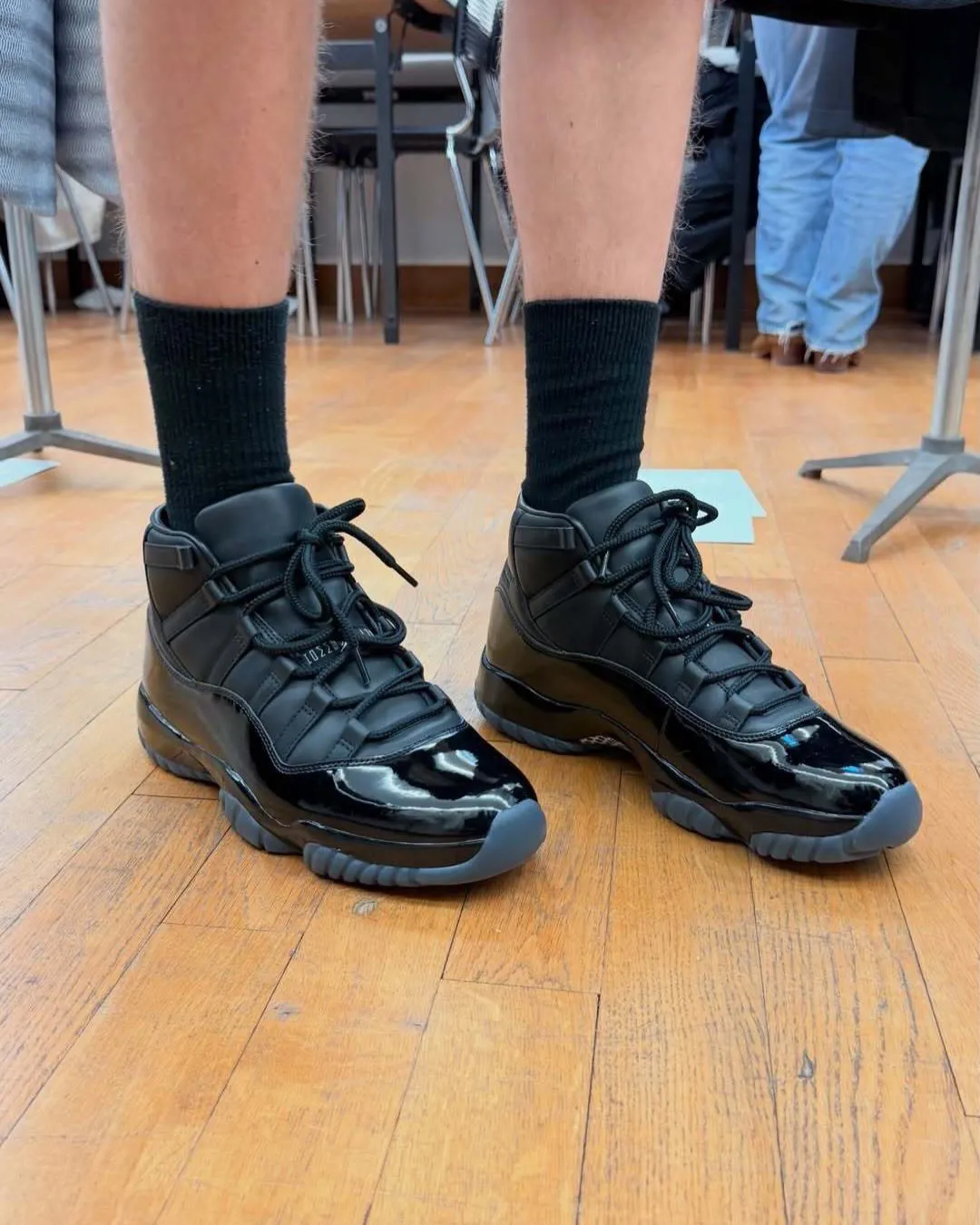 For years, the AJ11 was only ever released in original colorways, or styles so good they became instant classics. In more recent years, Jordan and Nike have started to loosen that grip on the icon, allowing more unique interpretations of the silhouette to hit shelves. Now, CdG Homme Plus has done the impossible by managing to get the shoe as their collaborative offering for Fall 2026. This is the first-ever collaboration for the 11, which hasn’t even been included in Nike’s Doernbecher program, despite nearly every other OG Jordan getting a special release. CdG’s take is, as expected, quite simple. The model comes in either all black or all white, featuring a matte finish on the leather, a nice contrast to the shiny patent leather mudguards.