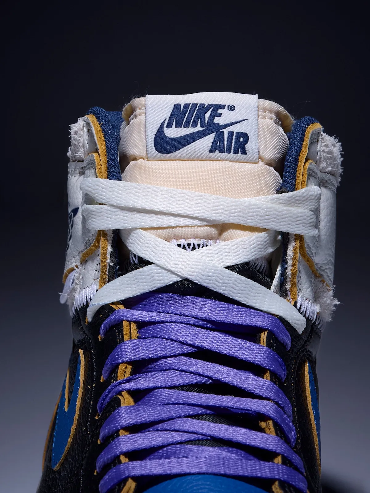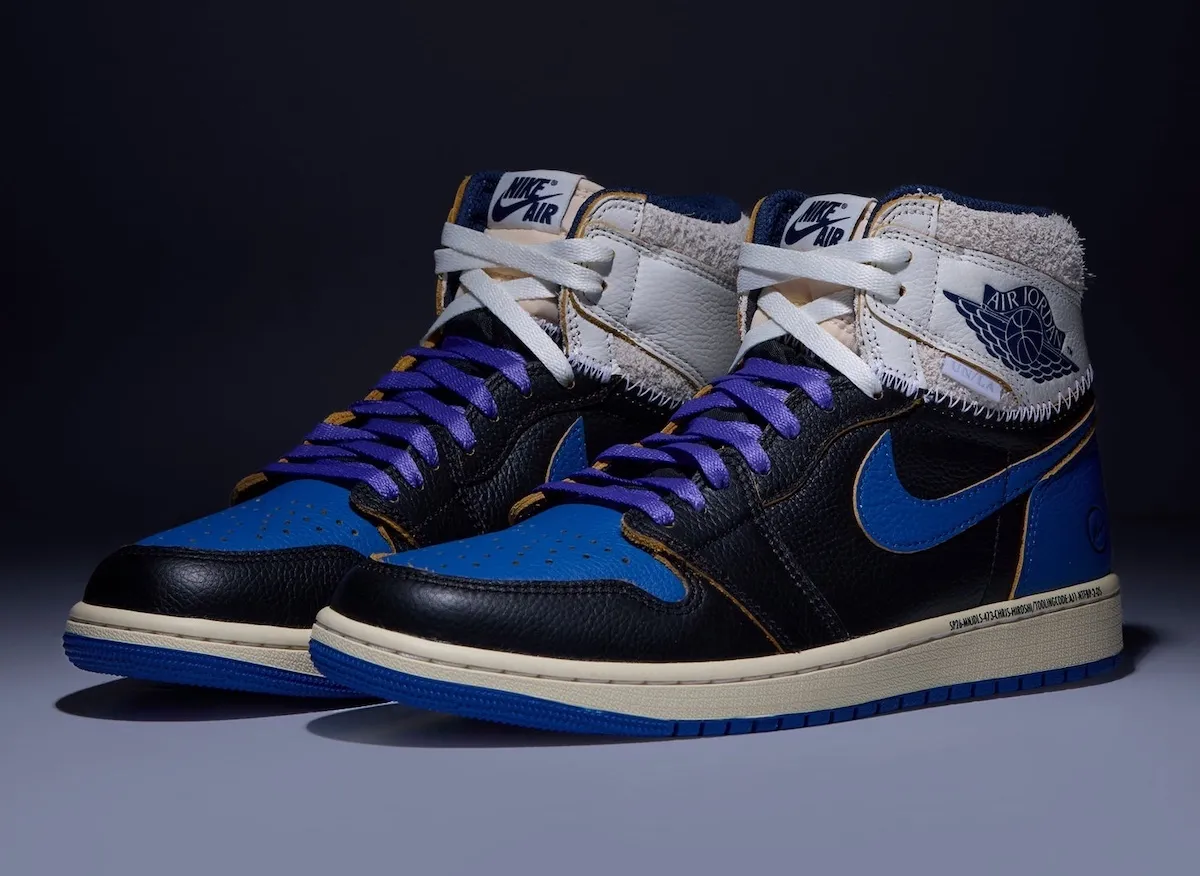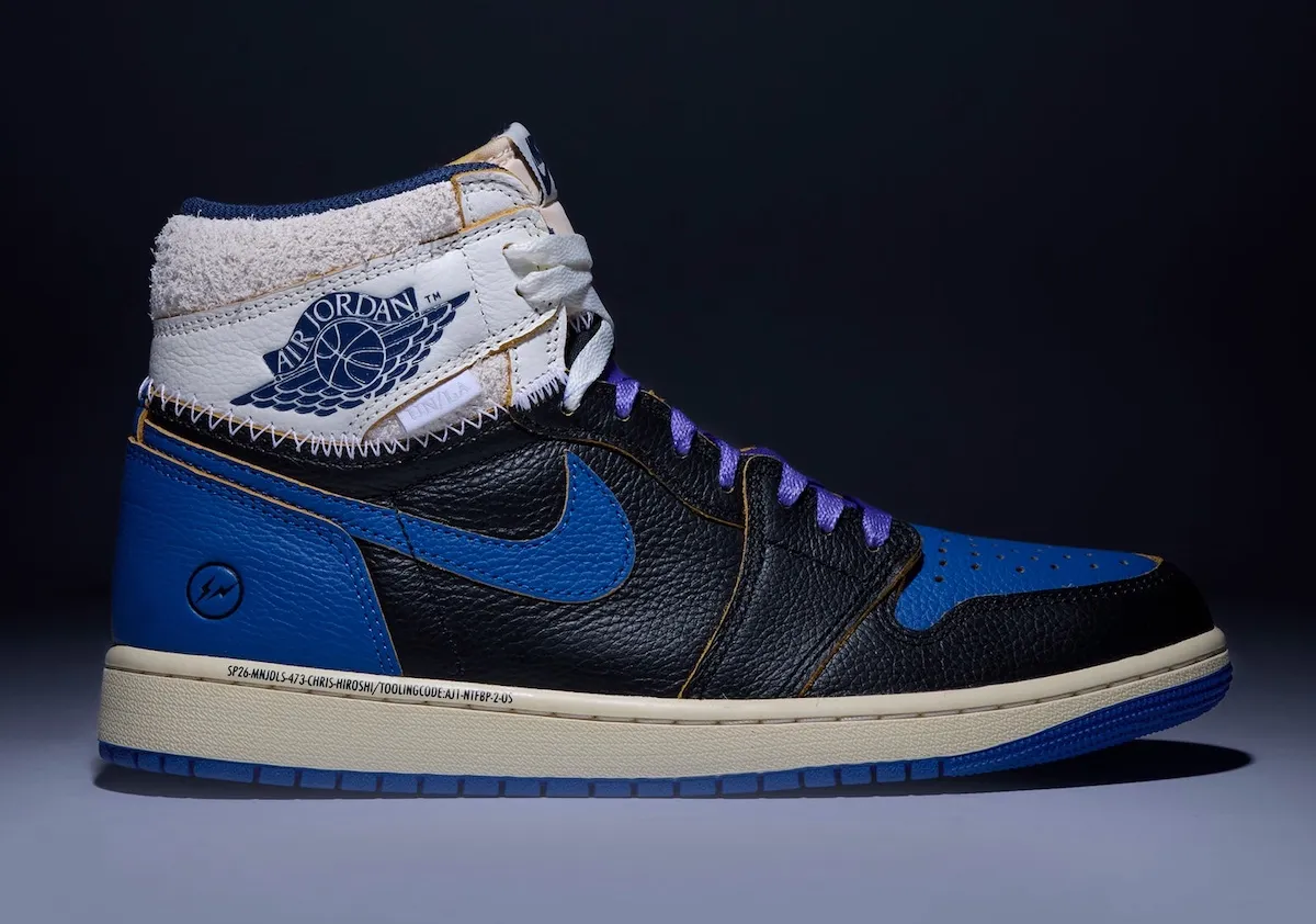 UPDATE 4/2/25: The first images of the Union x Fragment x Jordan 1 High are here, giving us an early look at the “Game Royal” hybrid style rumored to release in 2026.
