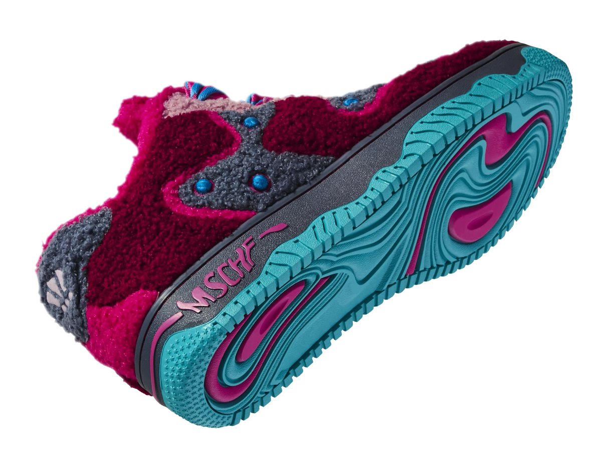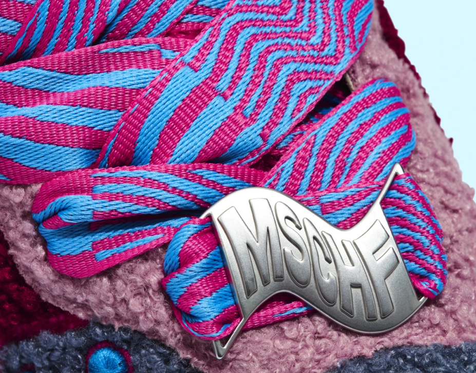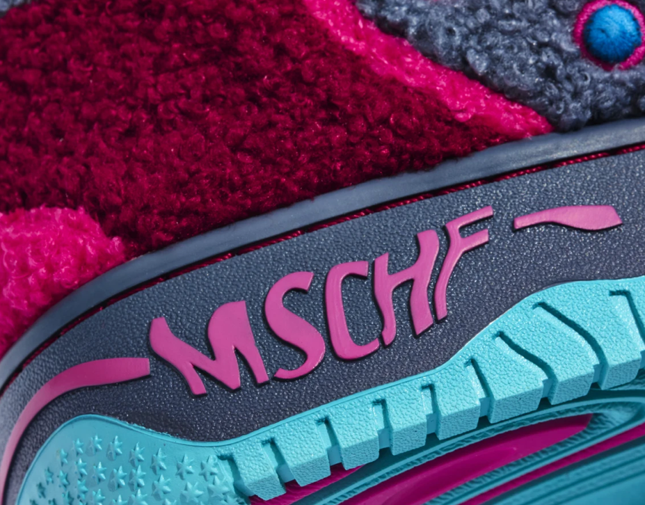 MSCHF first appeared on the sneaker scene last Summer, crafting wild new silhouettes that pay homage to the history of footwear. Some can be interpreted as flips of classic silhouettes, like their Super Normal and Gobstomper models, while others, like the AC.1 boot, are just straight up weird. This week, the brand has surprised us with a fresh pair of their Super Normal 2 silhouette, this time designed in collaboration with Kid Cudi. Cudder’s take on the model brings some wild energy, dubbing the shoe ‘Insano’. The upper is made of fleece, and features shades of red and pink over a grey base. Embroidered details are added throughout, along with blue and pink laces and midsoles to complete the look.