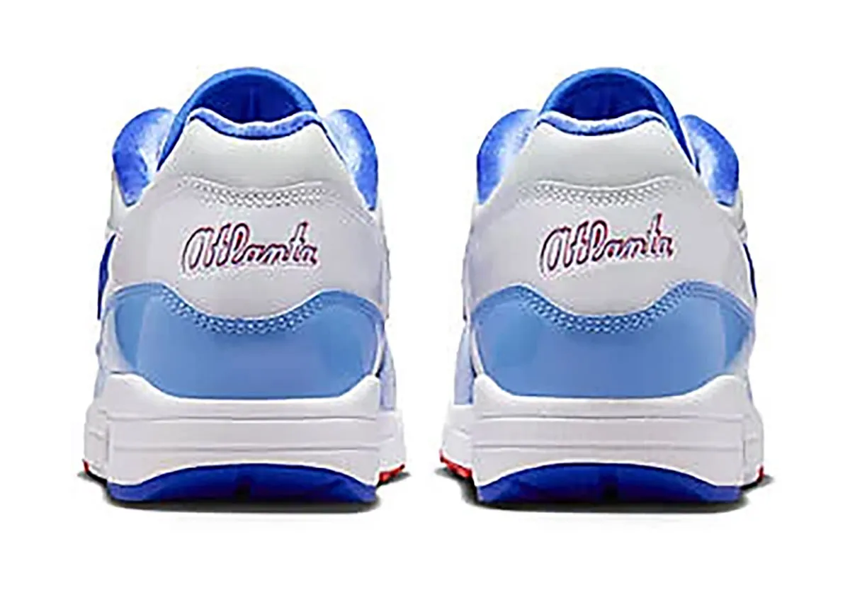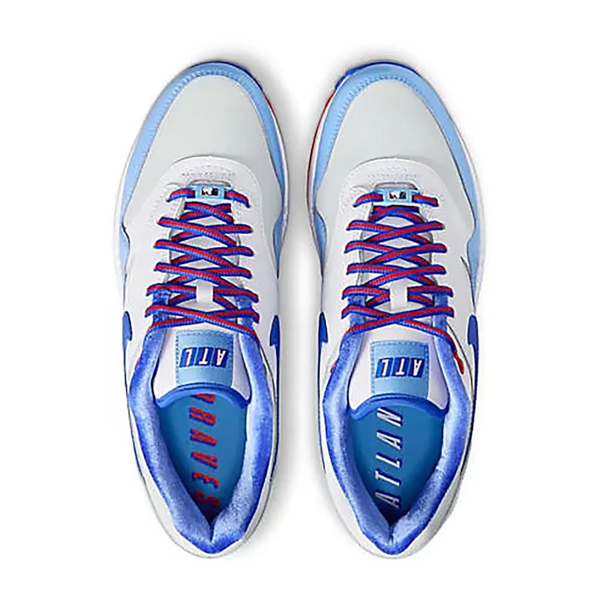 Baseball is back, baby. The first pitch of this new season was thrown on March 25th, and games have been plentiful in the month since. Just days after the opening day match between the Yankees & Giants, an upcoming project from Nike, the league’s official jersey supplier, leaked ahead of schedule, teasing an expansive project in partnership with the MLB. The work involves Nike’s City Connect jerseys, the more colorful, eye-catching uniforms provided for each team during the season. These styles typically tie-in with local history and culture, or reference vintage jerseys. Nike is embarking on a sneaker project for fans, bringing the style of City Connect uniforms to footwear, specifically, the Air Max 1. So far, the Padres‘ pair has surfaced, and now the Atlanta Braves’ style has joined the collection. Their take colors the AM1 in white with light & dark shades of blue for the mudguard, Swoosh, and lining. Small hints of red round out the palette, with plenty of ATL branding to complete the look.