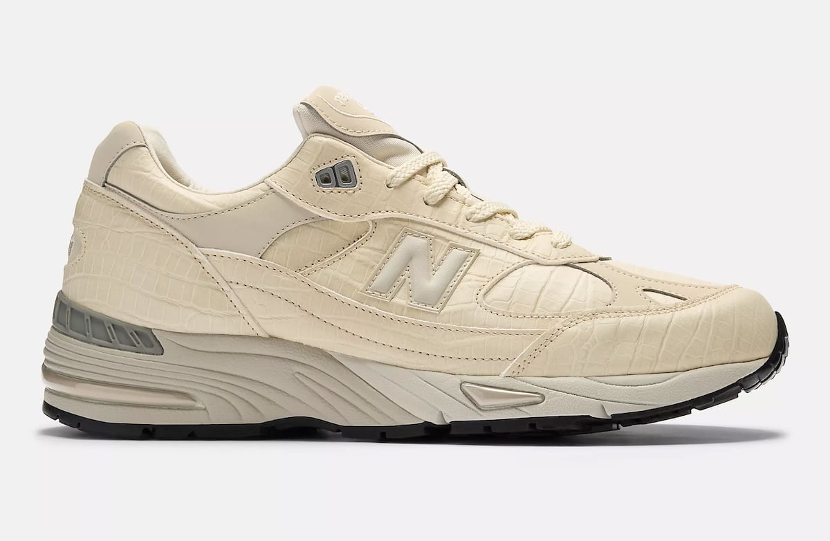 Crocodile leather and footwear go together like peanut butter and jelly. The rare, luxurious textile is making an appearance on New Balance’s Made in UK 991 this season, donning a smooth cream white color for the occasion.