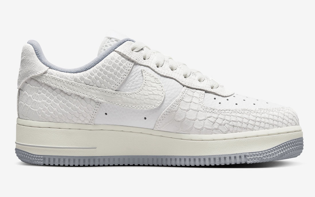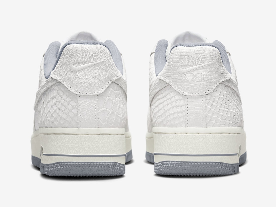 The design will feature some of the neutral white vibes the OG Air Force 1 is known for but with additional details that give the rendition a whole new outlook. Featuring a white leather design across the base, luxurious white python leather is featured on the overlay system which includes the Nike Swoosh logos on the sides. To contrast the white reptilian design, grey is used on the sockliner while also appearing on the AIR branding on the midsole. To complete the makeover, a white rubber midsole and grey outsole are added below to finish the new rendition.