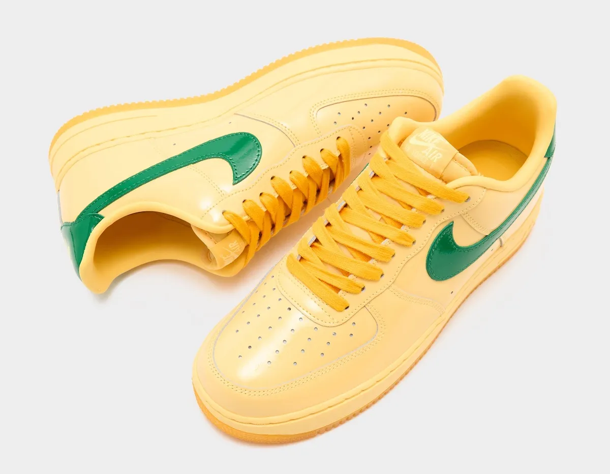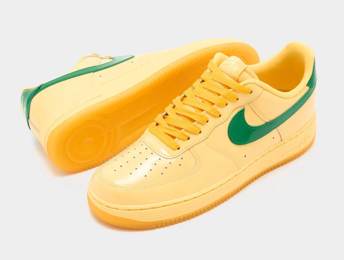 Nike’s latest new colorway of their Air Force 1 Low has not been announced for release, though the sample tag in the photo has them penciled in for Summer 2026. This pair comes in a patent leather build nearly all of which comes in a soft “Topaz Gold” shade of yellow. Pairs will likely be available from both Nike and select retailers, with an expected $120 price tag.