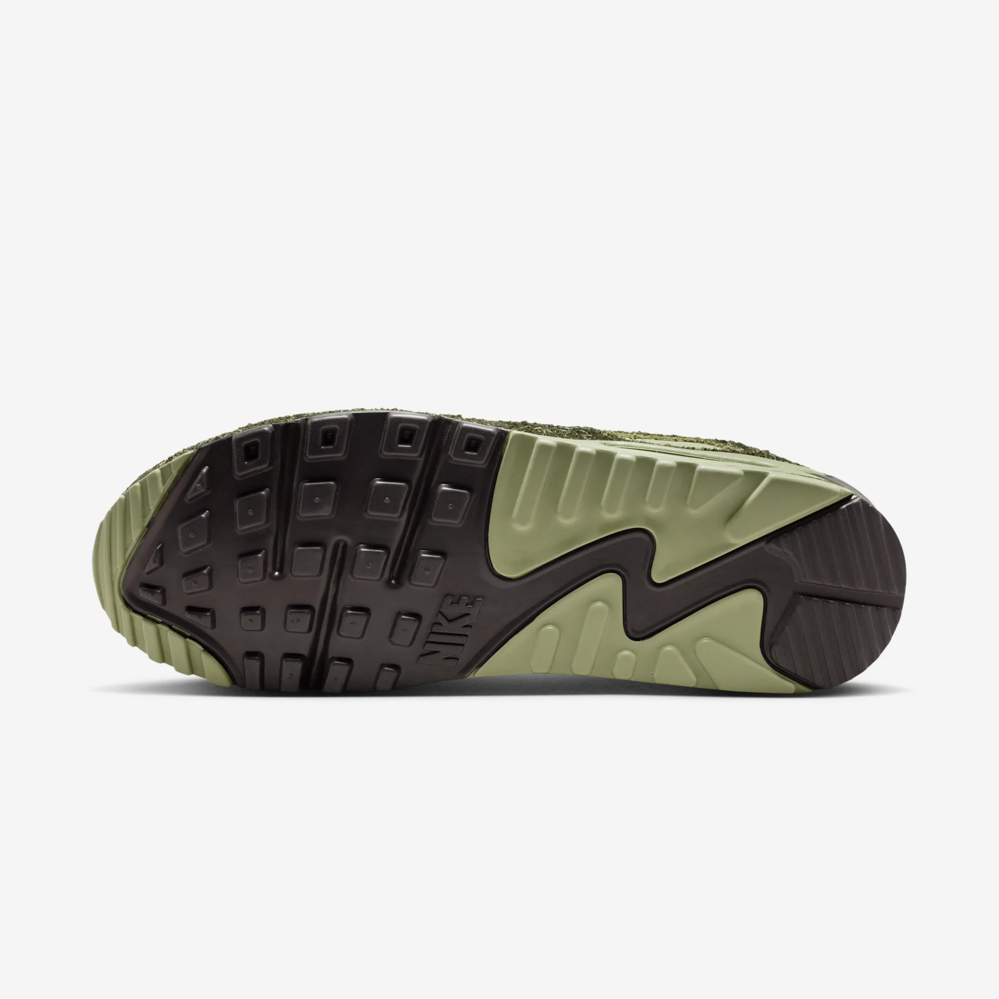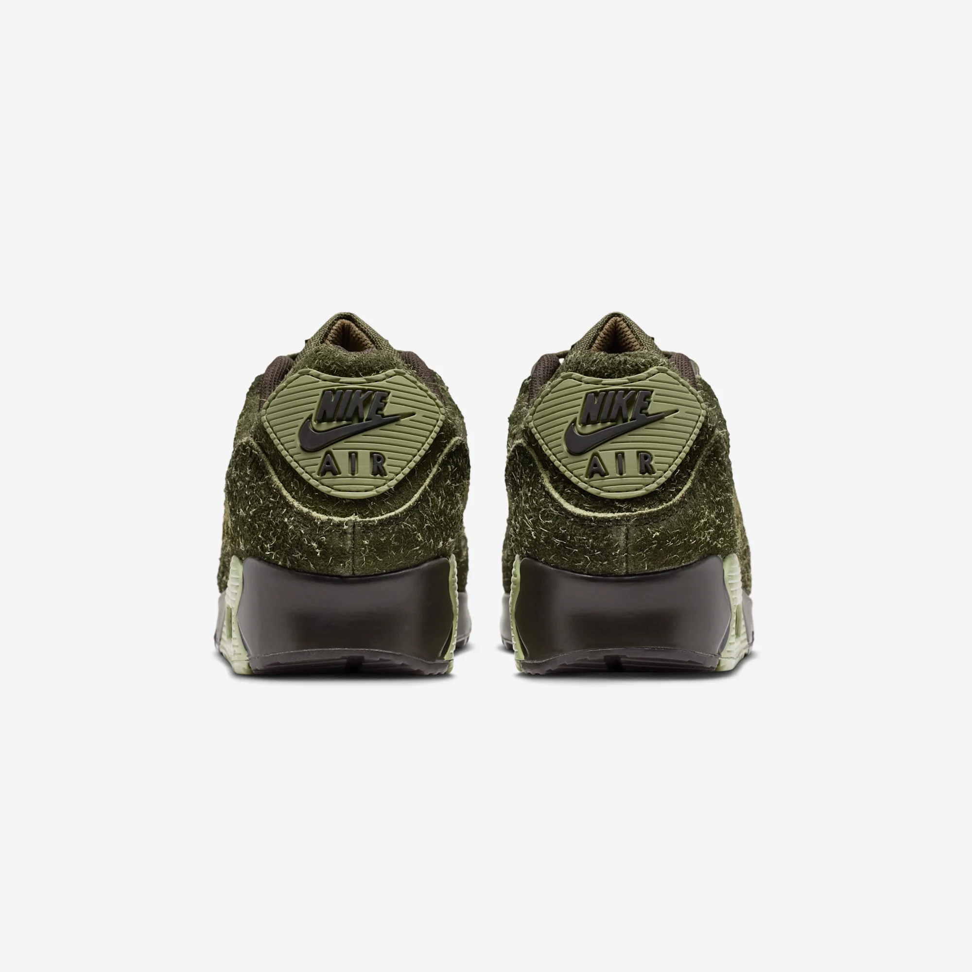 Now, it appears Nike is at it again with another skunk-like release, although this one tones down some of the more outright nods, in favor of a much more subtle approach. the Air Max 90 is the canvas for this release, and once again features the shaggy suede approach, covering most of the shoe in a dark olive green hue. This is paired with lighter green elements for the shoe’s TPU panels, and a dark purple shade for the Swooshes and main midsole components.