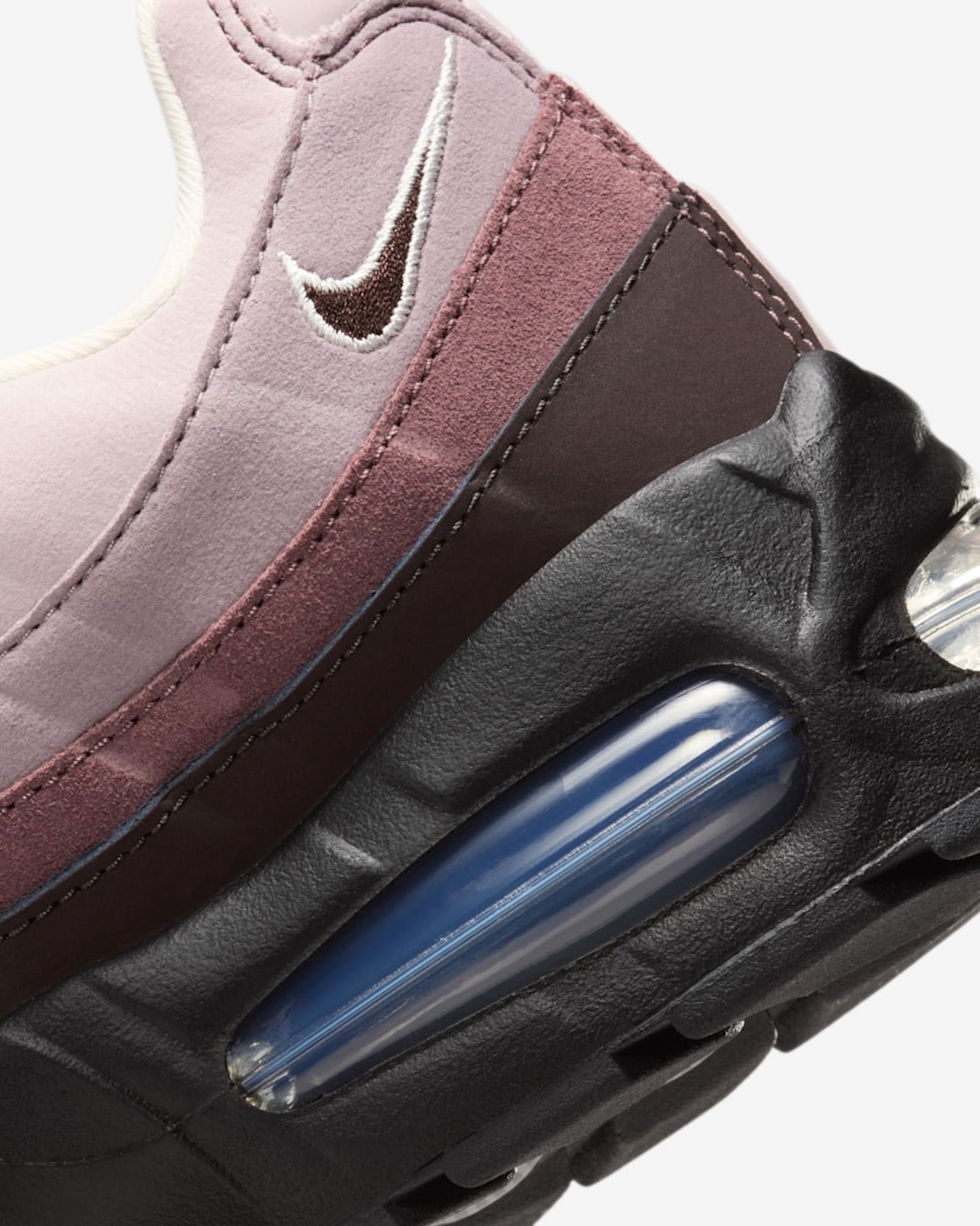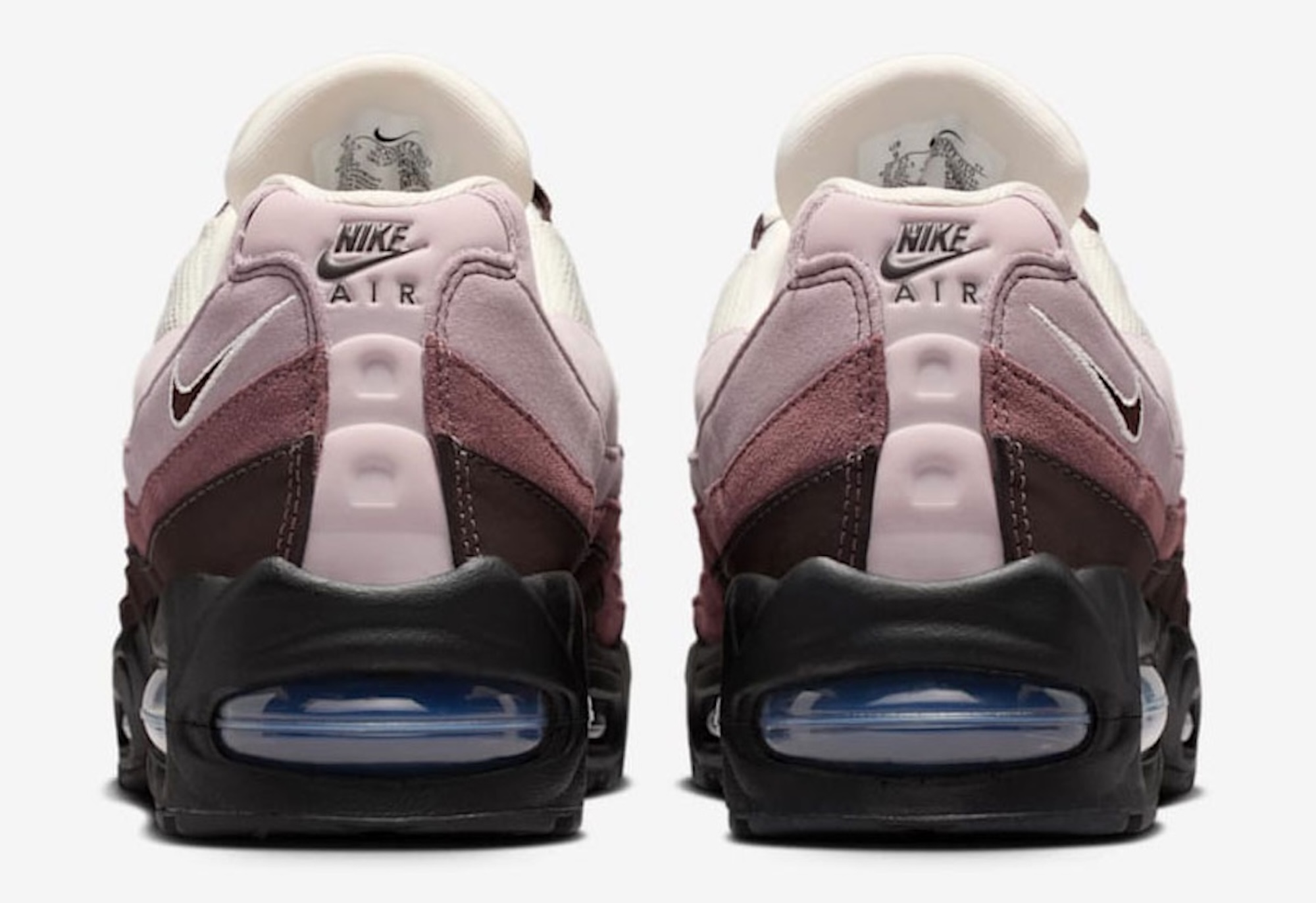 This week, Nike has announced the release of their latest colorway for the beloved ’90s running shoe, dressing the silhouette in a new “Tattoo” look. The pair follows the same gradient color scheme that made it famous, starting with a cream off-white hue for the upper levels of the model. This transitions into a light pink mid section and other hues in the “Violet Ore” family, before ending in Velvet Brown for the lower most layers and toe caps. All of this rests on a black midsole, with blue Air bubbles tucked inside.
