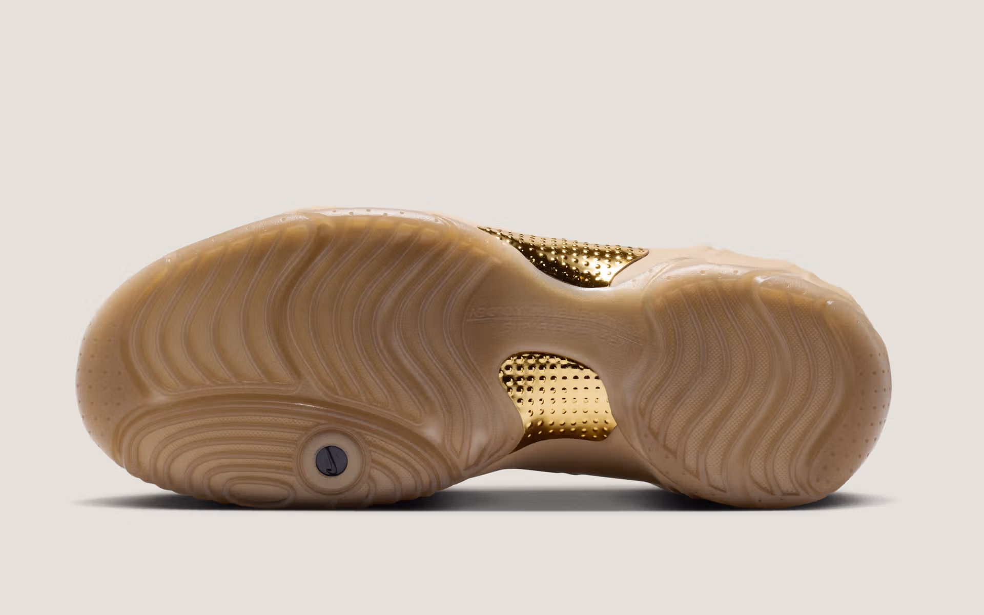 Nike’s Posite line of sneakers first came about in the late ’90s, introduced with the Foamposite in 1997. The shoe was pioneered by legendary designer Eric Avar, who spearheaded the use of the adaptable foam technology in Nike products. The shoe’s tough outer shell was made from foam that would mold to fit the wearer as it was worn, and was later used in a variety of models, like the Flightposite, a high-top, laceless basketball shoe. After the Flightposite’s debut in 1999, Nike released the Clogposite a few years later. This version combined the durable molding material with a low-cut, slip-on design for everyday wear. The Clogposite was revived in late 2024, and has become a Spring/Summer staple for Nike over the last few years. This week, a fresh take on the mule model has emerged as one their first releases for 2026. The new look comes in “Parachute Beige”, a pale brown shade covering the molded portions of the upper. The shoe’s inner lining and tongue piece come in black, while metallic gold Swooshes and a midfoot shank complete the look.