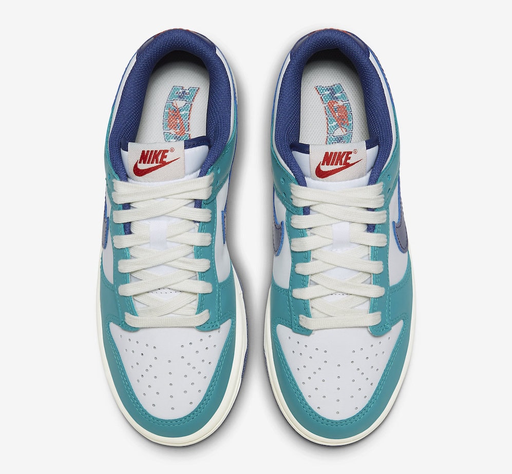 For fans of the Dunk Low, the past couple of months have been a treat. Seeing the model release in great colorways on a weekly basis has allowed many the ability to get their hands on a pair. This time around the sneaker will feature an official colorway of White, Dark Royal, Sail, Nebula Blue, and Mystic Red. Across the leather upper, the pair of kicks will feature white leather across the sides, toes, and ankles while aqua blue is used across the overlay system. Navy blue is then used on the Nike Swoosh logos across the sides while also painting the inner sockliner. To complete the design, a sail rubber midsole and navy outsole are featured underneath.