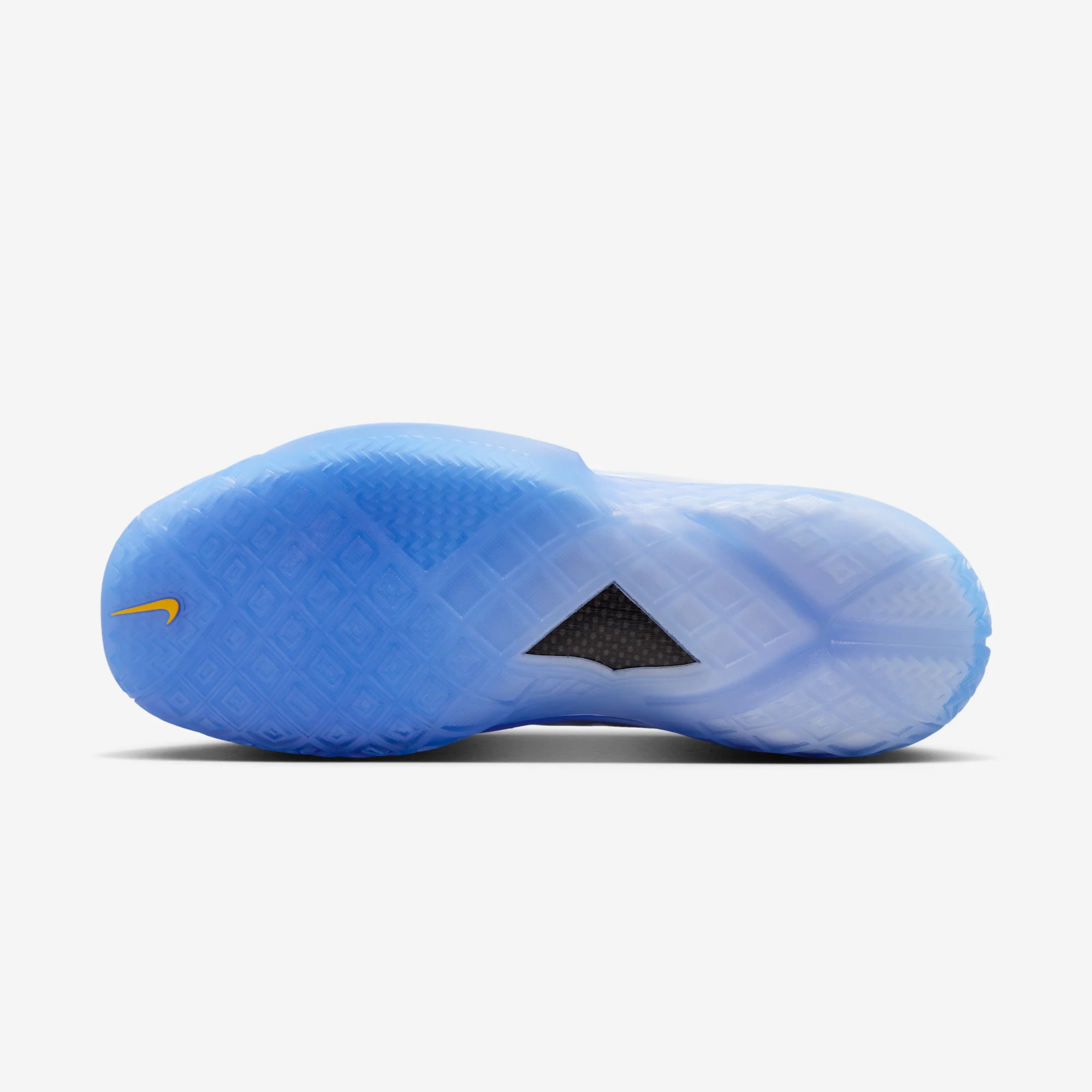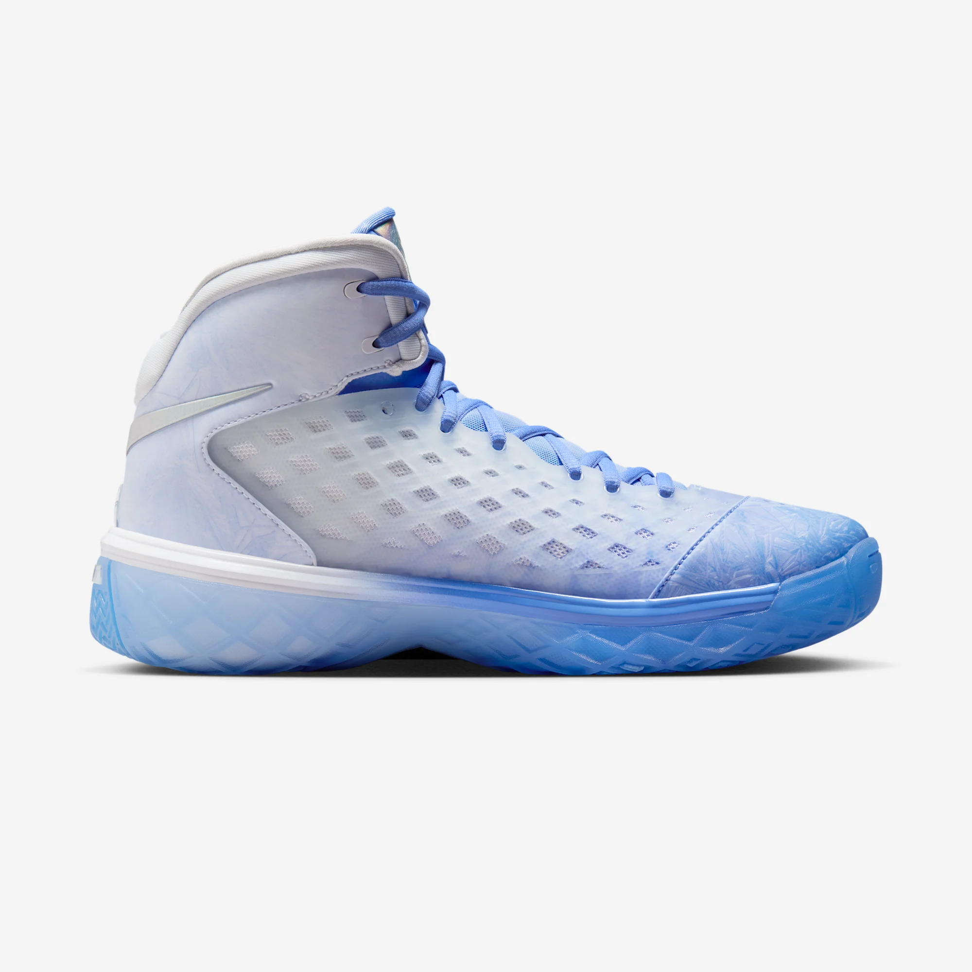After leaks early this year regarding the return of the Kobe 3, we finally got an official look from both Nike and Vanessa Bryant in August. The Kobe 3 Protro emerged in a clean “Halo” white edition, which will mark the shoe’s debut. Now, we have an official look at the first public release of a player-exclusive model worn by Kobe in 2007; the Christmas day colorway. Created for a Christmas day game in 2007, the shoe features an icy blue toe and forefoot, before fading to a clean while rear section. The signature cage is applied in a semi-translucent milk shade, with blue tongues and laces underneath.
