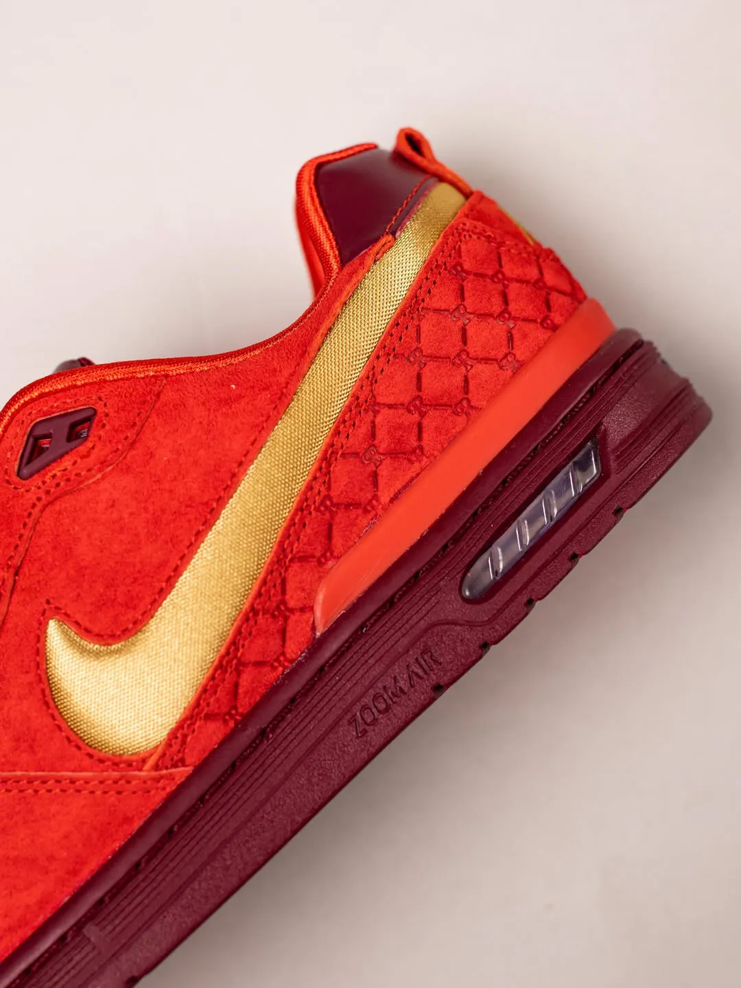 Luckily, P-Rod and the SB team have plenty more takes on the P-Rod 1 lined up for releases in 2026. Last month, Rodriguez himself showed off two new styles of the shoe for next year, including a Dodgers-inspired grey and blue look, and a tonal “British Tan” version. Now, another colorway has emerged, seemingly celebrating the NBA All-Star weekend in February. The model comes in a mostly “Habanero Red” color across its suede and quilted leather upper. Dark red accents make up the soles and heel counters, while metallic gold Swooshes and Nike SB branding complete the look. Finally, a lace jewel with the NBA’s West division appears at the toe, either declaring P-Rod’s allegiance to one team, or w could see a matching blue pair comes February.