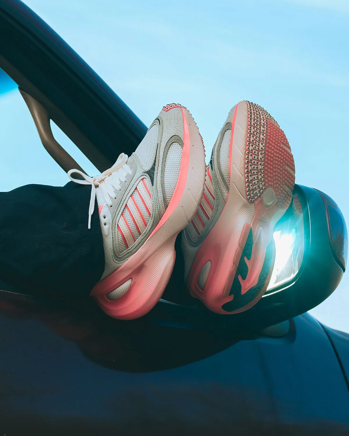 The “Roadkill” theme for this Politics x adidas project seems a little gruesome, but is a common phenomenon along Texas’ western highways. The model pulls from the intersection of instinct & the open road, with its narrative inspired by survival and movement, making a lifestyle runner the perfect choice of silhouette. Breathable mesh forms the shoe’s base layer, with suede and nubuck stakced on top to mimic rough terrain. The chunky midsole features a gradient color, starting with soft pink at the heels and gradually transitioning to a smooth off-white hue.