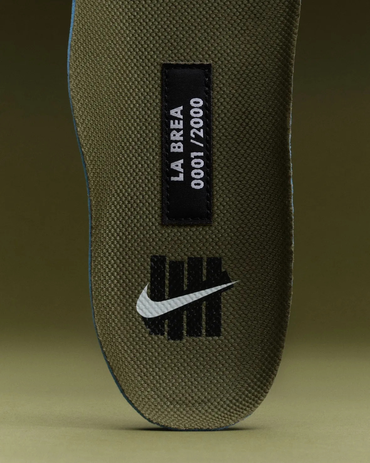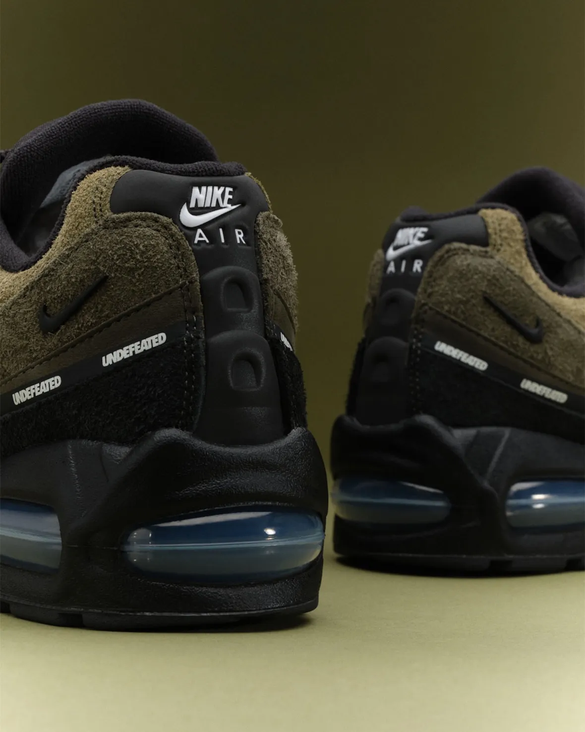 After the launch of the AM95 in plain black and white colorways at the beginning of the month, Undefeated surprised us with a second batch of colors for a City Series. Featuring four styles in total, these pairs are available exclusively through select stores in very limited numbers; 600 units in most cases, 2,200 for the blue colorway. Now, an additional city-exclusive pair has surfaced, celebrating their main Los Angeles location on La Brea. This pair comes in a mostly black color scheme, adding Medium Olive tones for the layering across the upper. Additionally, this style is limited to just 2,000 pairs, each individually numbered on the insoles.