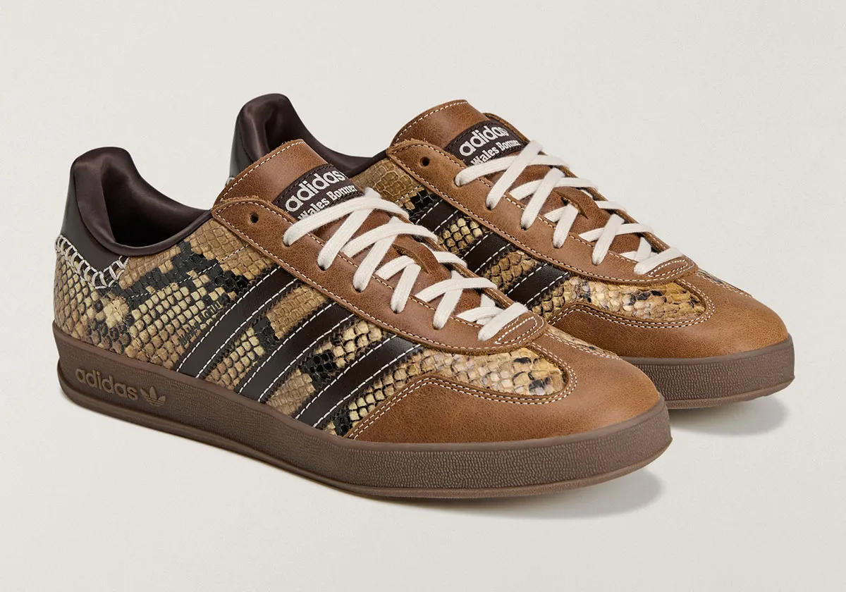 This week, the latest from Wales Bonner and adidas has started to surface online, showing off a new range of footwear for Spring/Summer 2026. Most of the official photos from adidas have been shared by @vladieboi, giving us a detailed look at their new styles for the Gazelle Indoor and Karintha models. The Gazelle comes in two animal-inspired treatments, the first sporting a python snakeskin pattern across the upper, and the second dressed in dark brown cow fur. The Karintha styles lean into more traditional materials, offered in black or white supple leather with matching blue inner linings and brown leather toe caps.